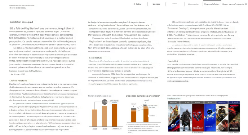 Le rapport met un accent particulier sur Sony Interactive Entertainment (SIE) et sa marque iconique PlayStation. L’objectif reste clair : être le meilleur endroit pour jouer.