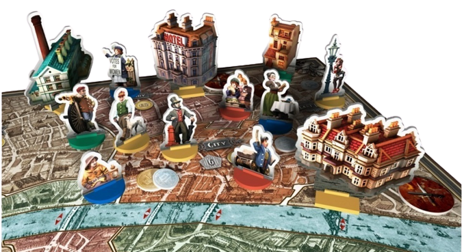 Un plateau détaillé représentant le Londres victorien,