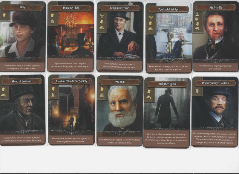 Le joueur incarne une personnalité cachée (inspirée de personnages réels ou fictifs de l’époque, comme Charles Dickens ou Moriarty), dotée d’objectifs spécifiques à atteindre. L’identité secrète influe directement sur la stratégie, car chacun poursuit une condition de victoire différente.